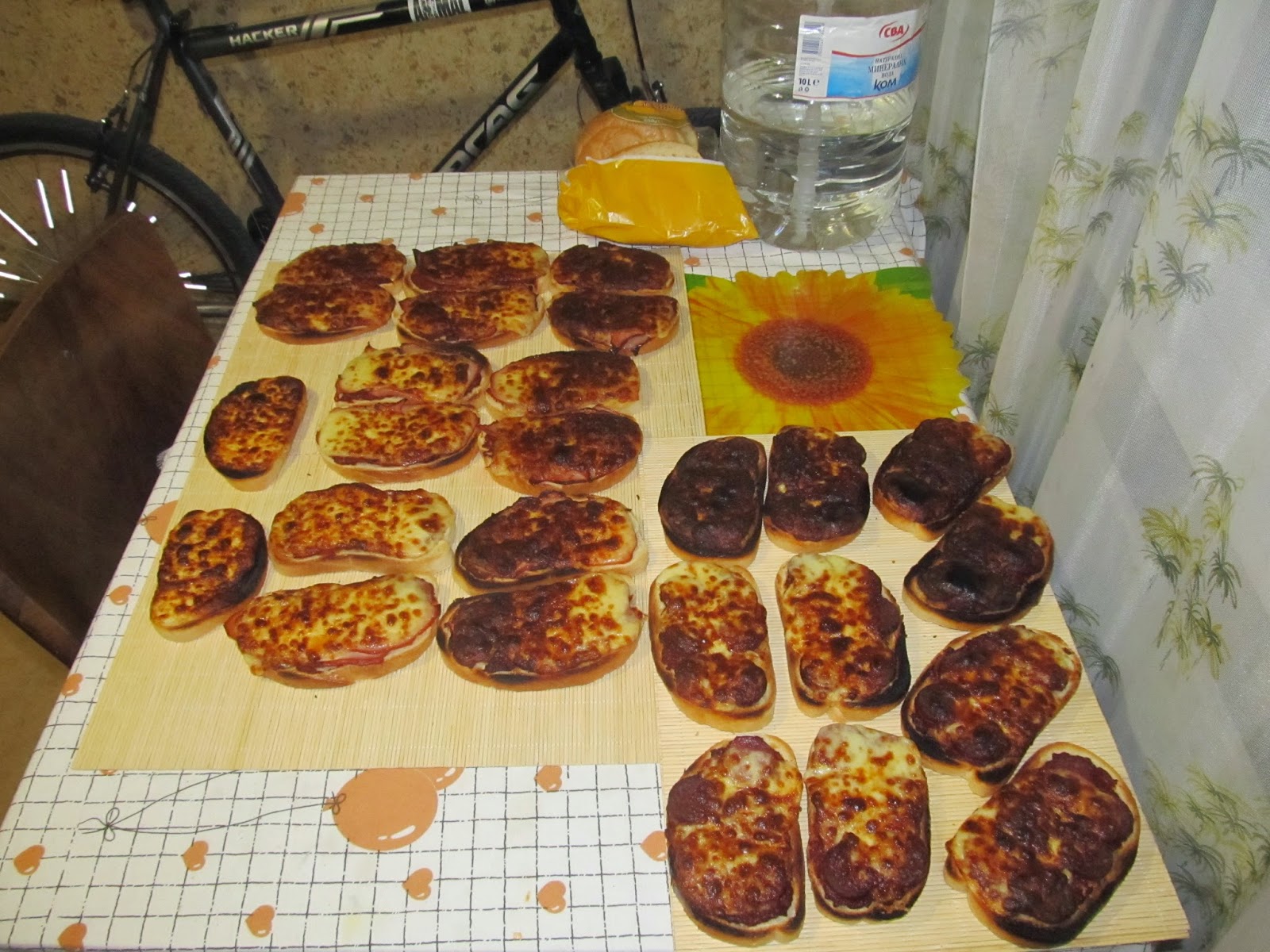 - Сандвичи за 6 дена до първо зареждане на Беклемето (2 хляба над 30 филии запечени на двойни сандвичи на партигрил с кашкавал и месо за първите 3 дни и с кашкавал и луканка за вторите 3 - снимка (на пук на предположенията: не, без мазила и запечени не се развалят));