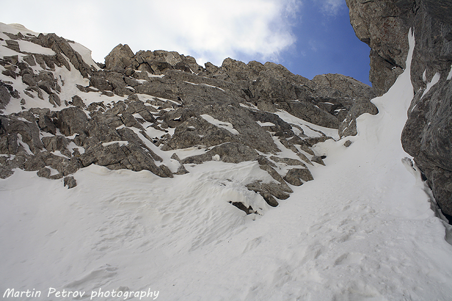 Началото на Кулоара от Казана. Преодоляхме скален оголен пасаж, който изкатерихме.