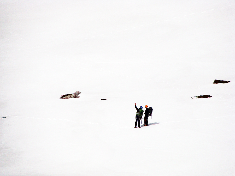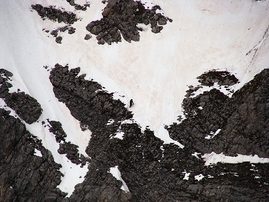 Въпреки сериозната подготовка, решихме да катерим соло. И това се оказа грешка, защото неосигурени в проблемния участък, Делчо не успя да продължи и се наложи да слиза обратно. Твърде опасно и рисковано... Аз се изкатерих през мек сняг и мокри скали със сечива забити неясно къде над скалата... Котките се пързаляха и по едно време усетих, че се държа на две забити сечива и коляно на скалата. Хубавите алпийски котки също се оказаха задължителни за успеха там... На места със свалени ръкавици, за да имаме допир до скалите, ръцете измръзнаха и станаха безчувствени. Въпреки прогноза за слънце, Кулоарът изливаше с вятър сух сняг, който пълнеше лицата и дрехите ни.