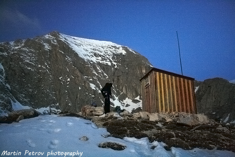 И се запътихме към неизвестното 24 часово приключение. Тръгнахме в 19:30, на другия ден по същото време се прибрахме. Цяла нощ прекарана в път до Банско, преход до заслон Казана на челници и лунна светлина, и трескава подготовка за Кулоара. Дремнахме половин час, колкото да оправдаем носенето на тежките спални чували.