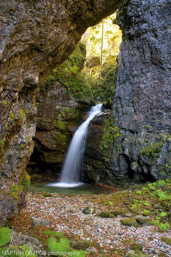 (Малка скоба и отклонение от темата) Пейзажът от горния кадър ми напомни за друго подобно място, каквито има много в Стара планина, а именно резерват Стенето и водопад големия Казан от долния кадър.