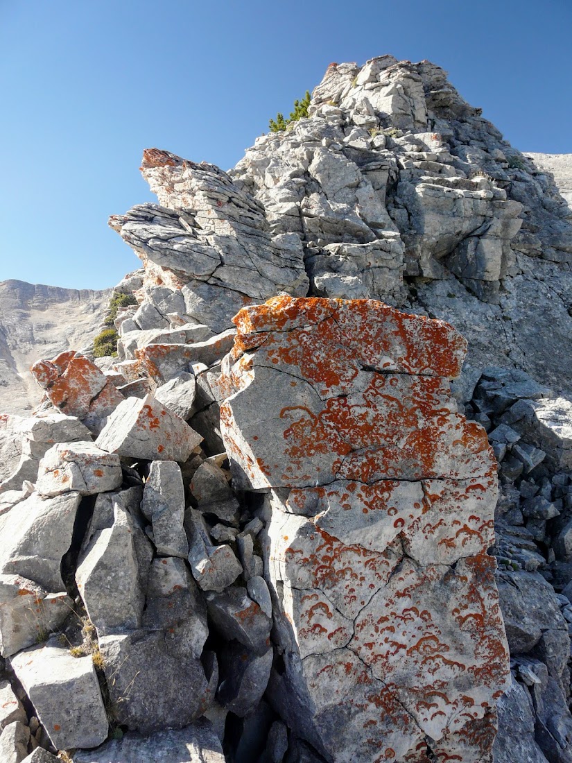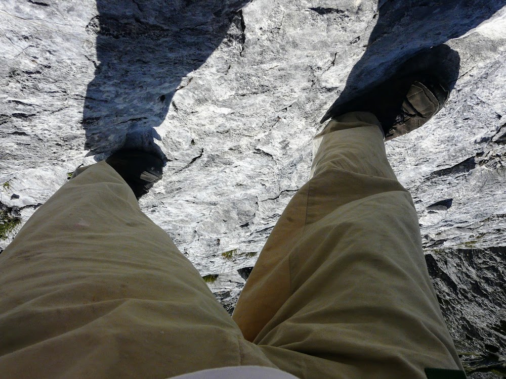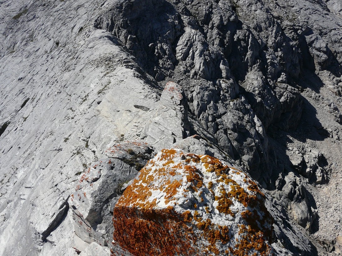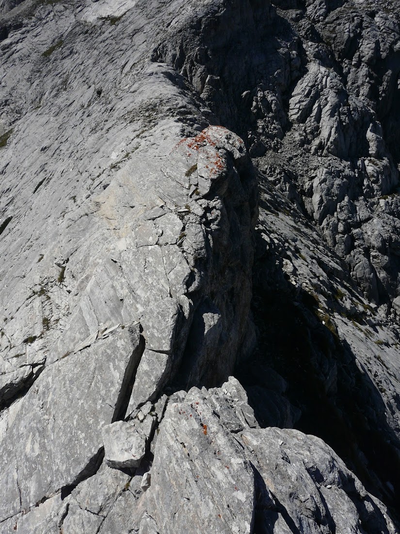 и един преход като скален нож между две чукчи - вижда се долу вляво на горната снимка, точно срещу оранжевият камък с лишеи. Добре, че е само 2-3 метра, и да залитнеш се фърляш върху чукчата и дано да имаш късмет и не се нацелиш в ченето.