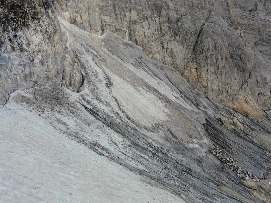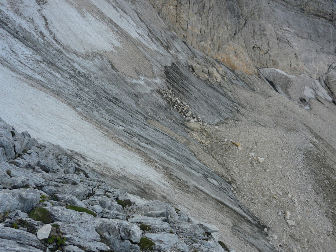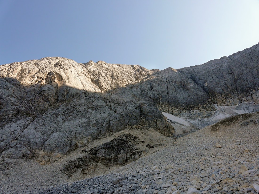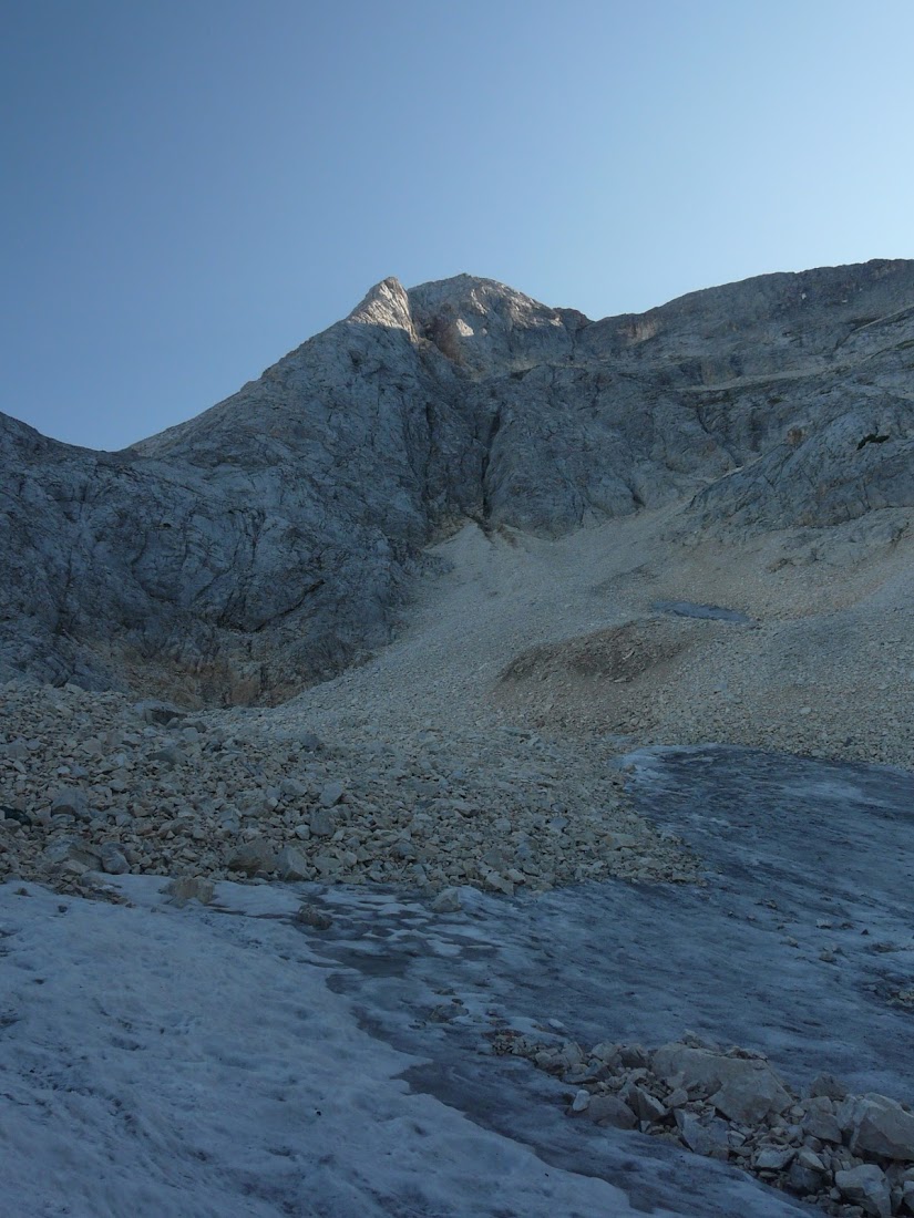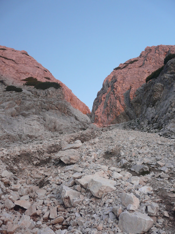 После се запътих по виа диагоналис, отново нов път за мен, директно под снежника и циркуса. Наслаждавах се на снежните преспи и челните морени, разхвърляни на различни места от последните ръкави на леда преди стотици години.