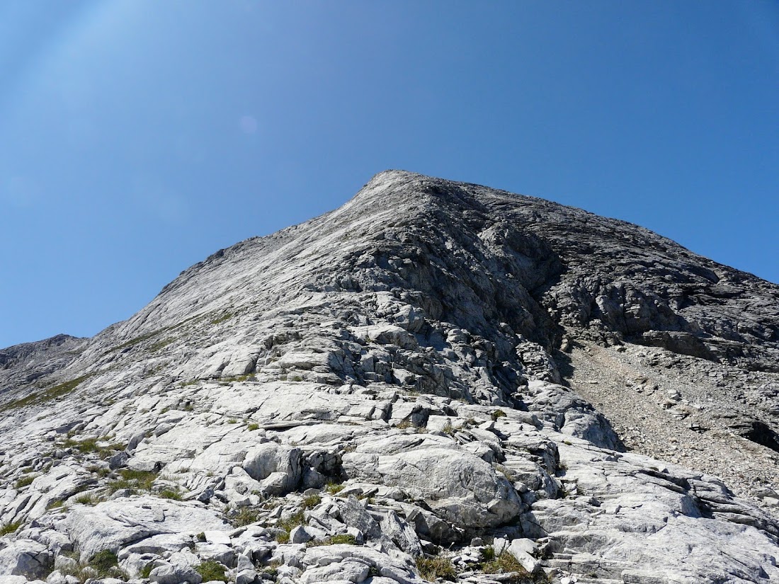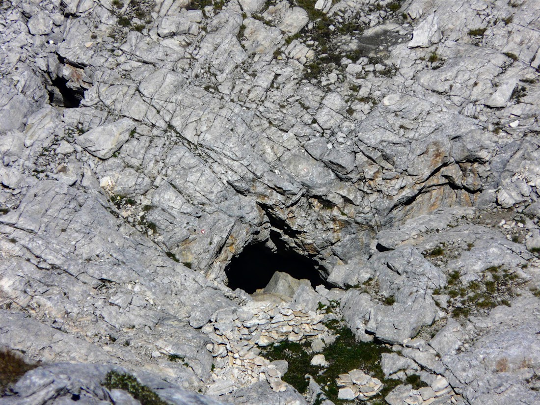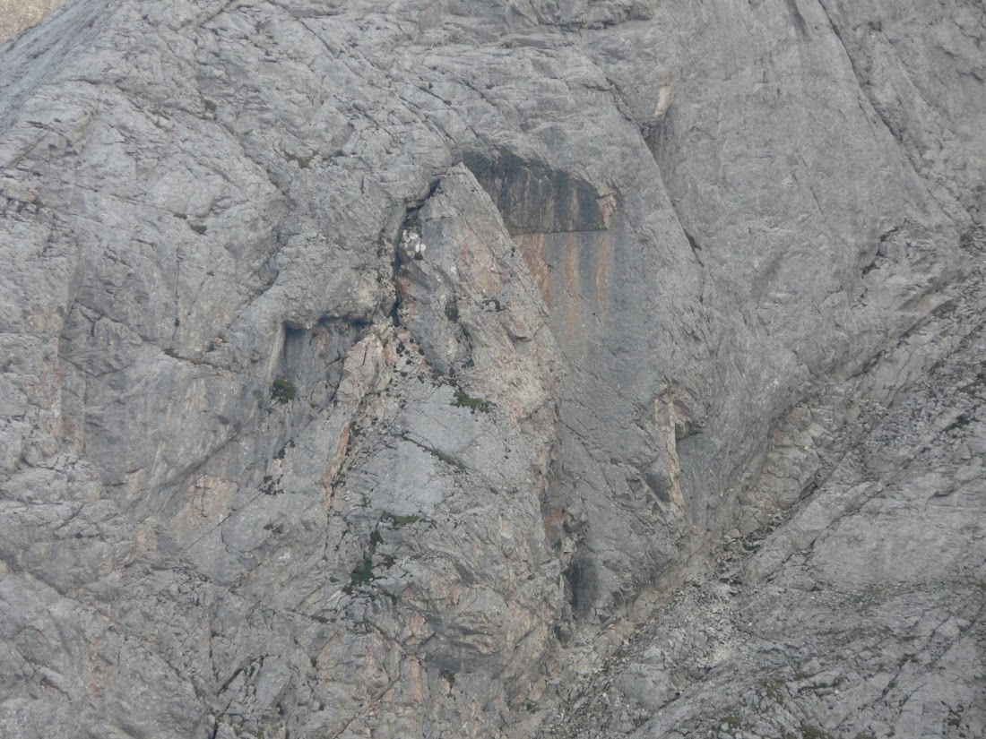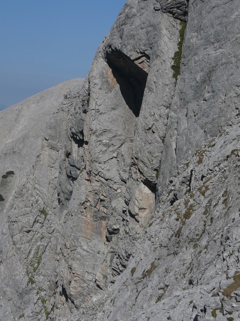 Мястото действително е много опасно и не бих минал друг път в близост до него. За пример с такива места, този връх на снимката долу ми се стори, че тази година го няма, паднал е. Може и да греша, но не можах да го видя :