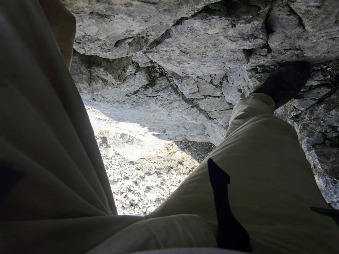 Тая скала след като я мина обърна ли се да я видиш как е тръгнала да си ходи? Лежи върху наклонена плоча и вече се хлъзнала и стърчи едни 20 см над бездната.