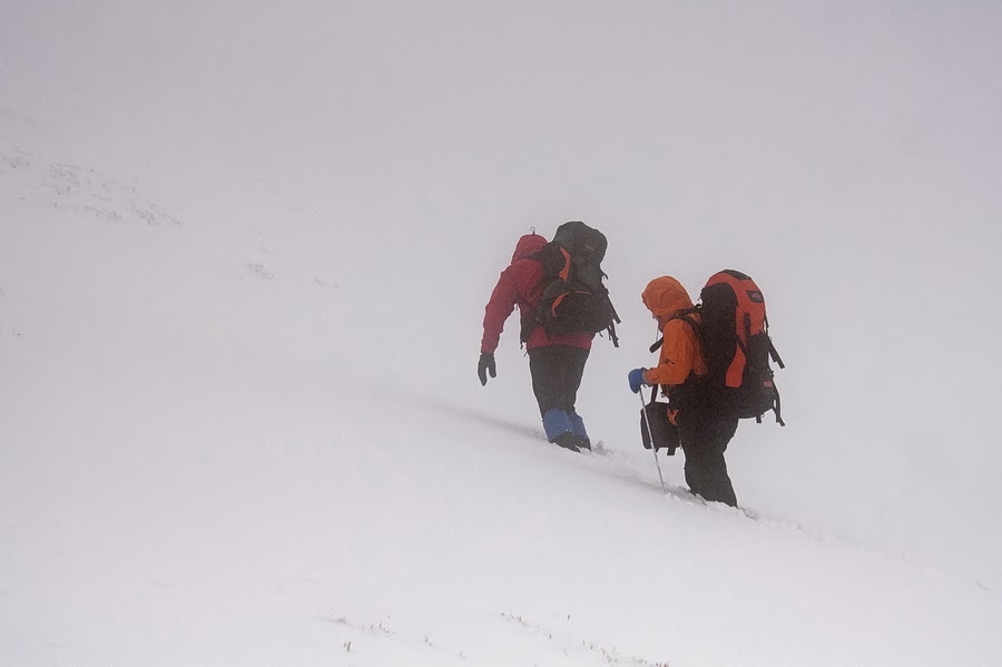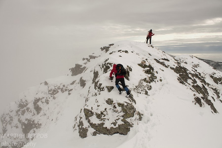 Още преди премката между малък и голям Купен времето ни даде да разберем, че вятъра ще се памайтапи с нас. Скрити на завет до едни скали сложихме маски, шлемове, шапки, качулки и подготвихме ледокопите за действие.
