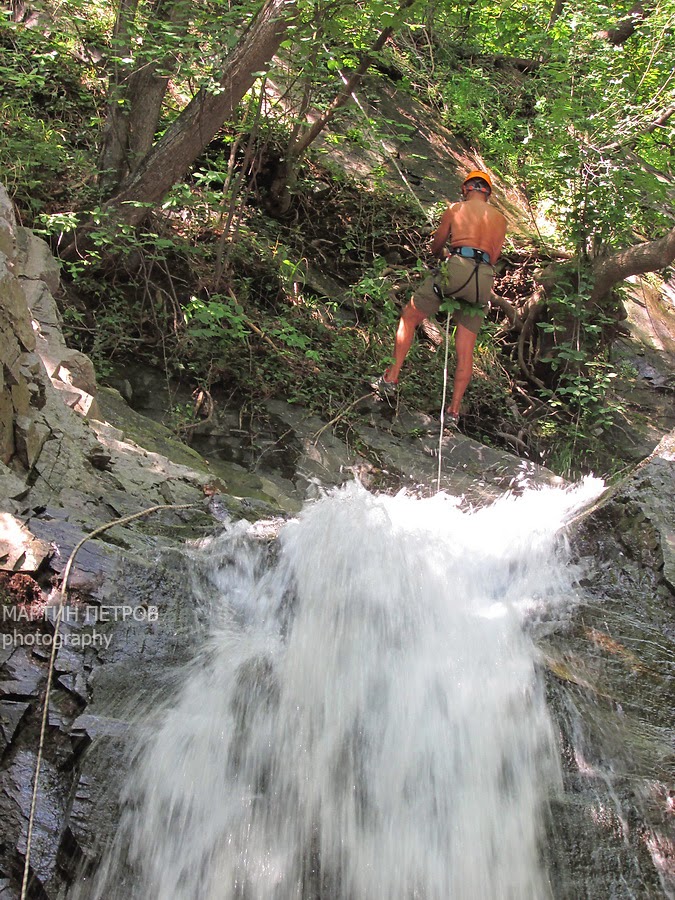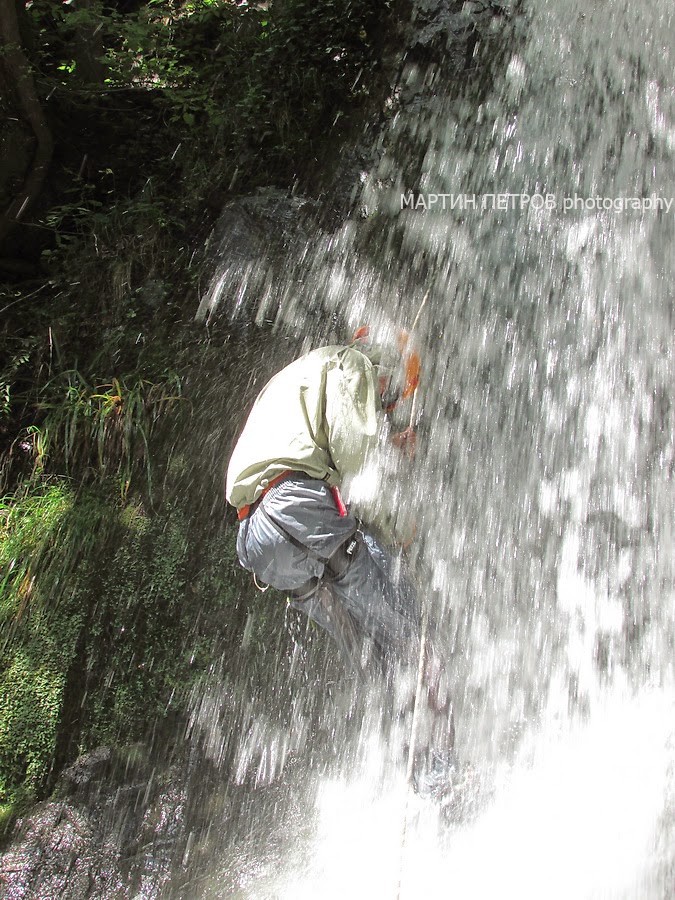 Но, кеф цена няма, адреналин от бучащите води и гарантираната разхлада. Долу се оказа, че гледайки въжето, се е събрала публика, каква ти публика, в подножието имаше най-малко 15-е човека. Smile
