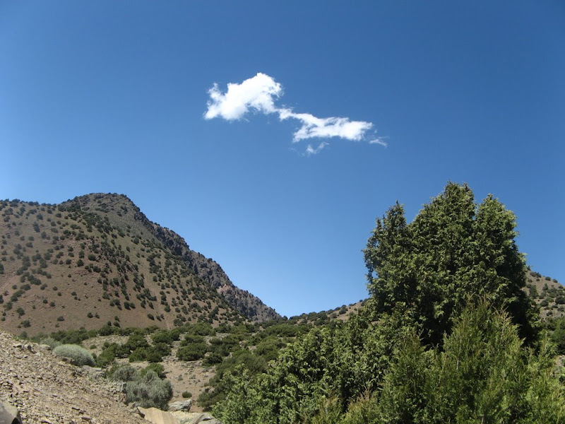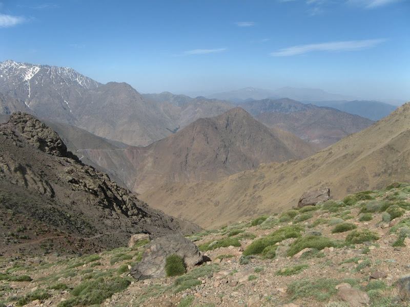 За 40 - 50 минути достигнахме превала, откъдето се откри масива на Тубкал. Откриха се страховити гледки. Всичко наоколо е толкова огромно, че те кара да се чувстваш като прашинка в пространството.
