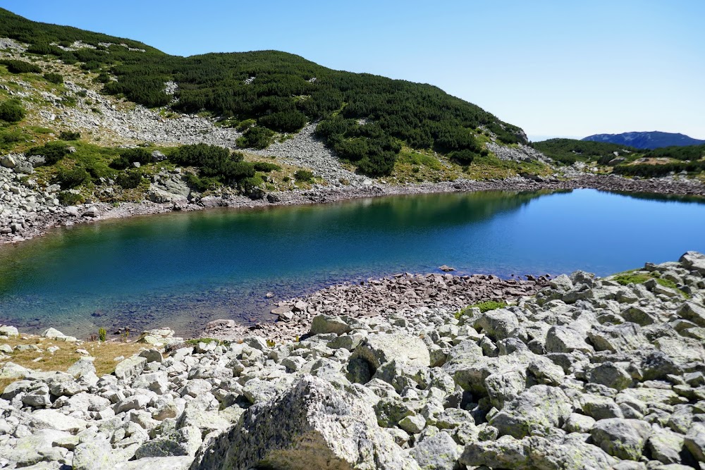 Отново през каменни блокове, няма път, се връщаме в посока голямото езеро. Там едно слънце, едно лято, сякаш сме на Средиземно море