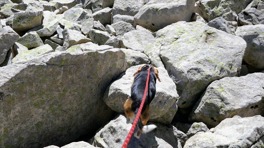 Още първият ден Дара ще трябва да ходи по камък, който се оказа най-лошият - гранит с шипове от втора скала, стърчащи като кабари от него. Още 3-4 км през такива камъни и трябва да се връщаме - лапичките на Дара ще се ожулят до кръв и няма да може да ходи, започва да куцука. То не е някакво огромно куче, 30 см е високо, само 12 кг. През камъните обаче ходи като машинка :