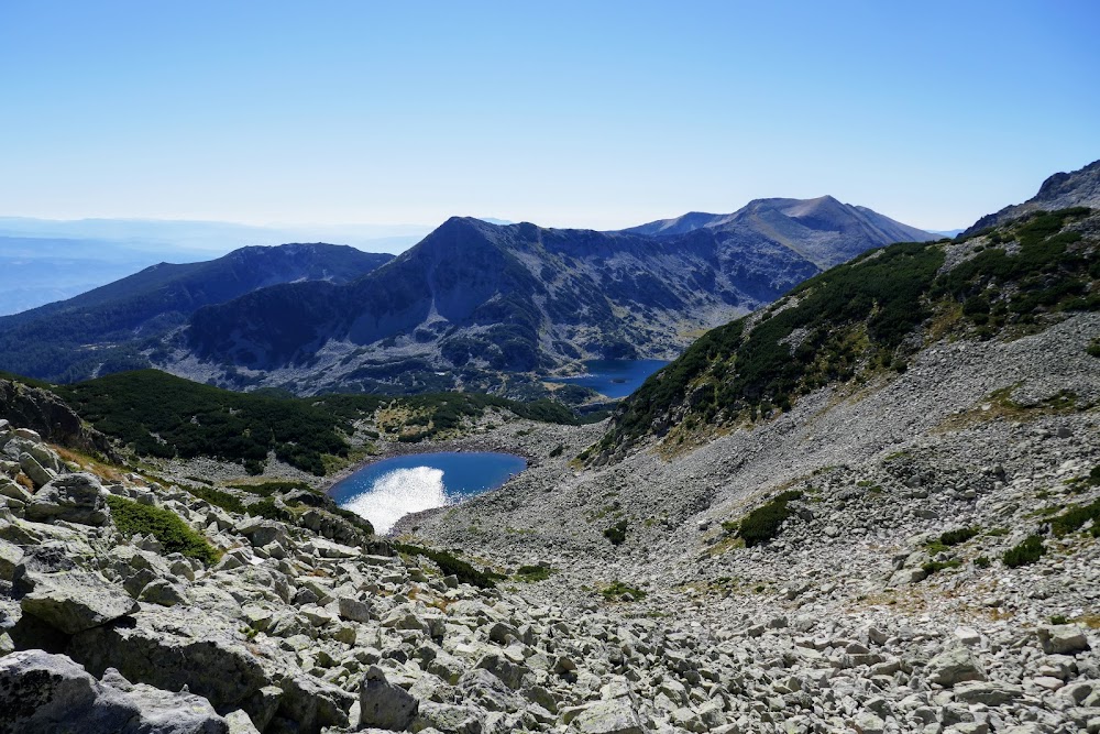 Обаче там закъсахме, защото между Митрево и Аргирово езеро камъните са много остри, и Дарчето страшно се измъчи. А след това изкачвахме Ченгелчал право нагоре по откоса, който се спуска в езерото.