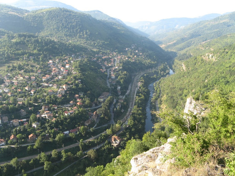 На тази снимка вдясно на скалите се вижда долчинка, по която слязох почти на новия хотел /бившия дом на туриста/. След това продължих на юг и след десетина минути слязох на пътя за село Згориград /на 5 минути от Червения площад/.