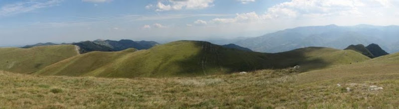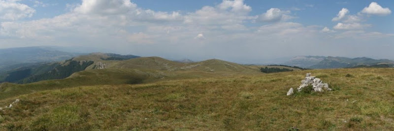 После заобиколих връх Тошина могила от север. Отклоних за малко от маршрута, за да изяза на една поляна, от която също се открива панорамна гледка на района.