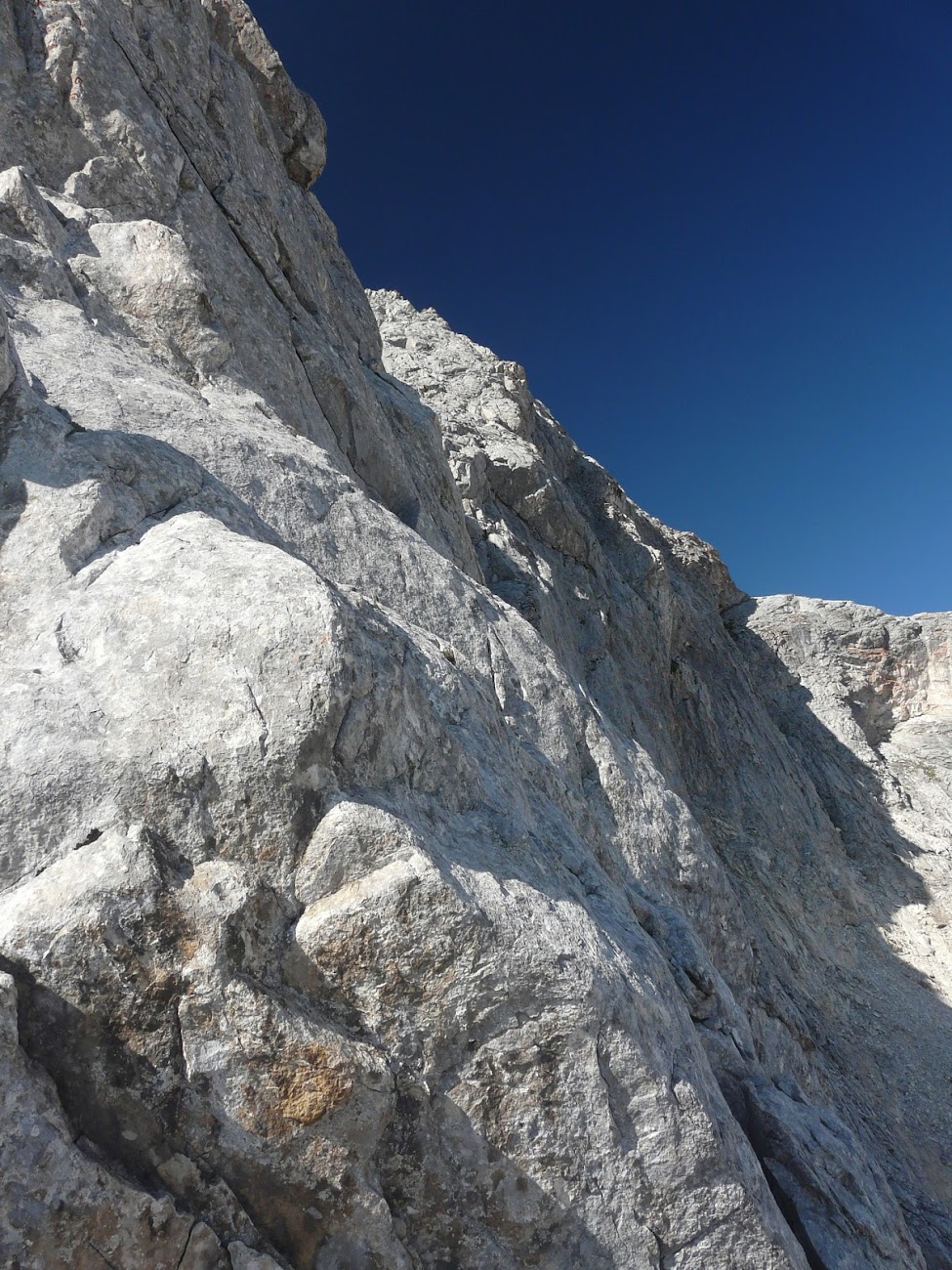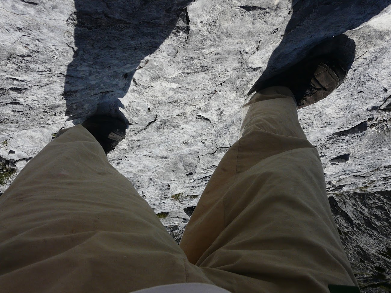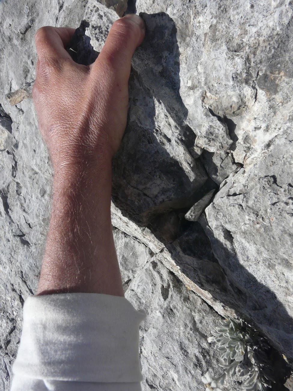 а и по траверса има притеснитеснителни места без процеп, само гладка скала.... Гледам, гледам нагоре... ни хватка, ни стъпка: