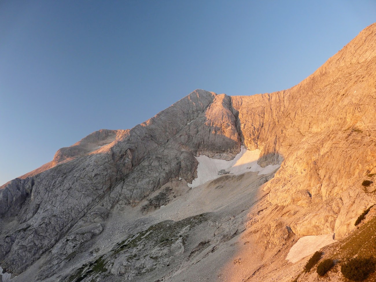 Ранна утрин , слънцето така грее, че отдолу е ясно че е север-североизток . Тъмно е , но се вижда че циркуса не е много дълбок. Значи е от върховете в другият мраморен дял с по-плитки циркуси, или другите по-ниски върхове под главното било от редицата на Стълбите, Окаден, Котешки чал, Черна могила... но там маркирани пътеки под които да е северен склон, и то страничен - йок. Проиграх си първият път жокера, даже три Честно ще е, някой по-сведущ ....