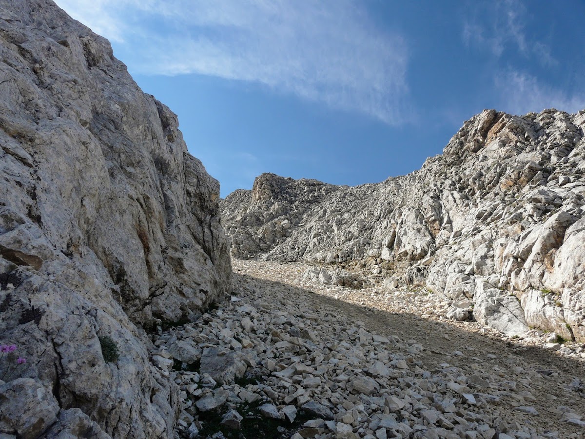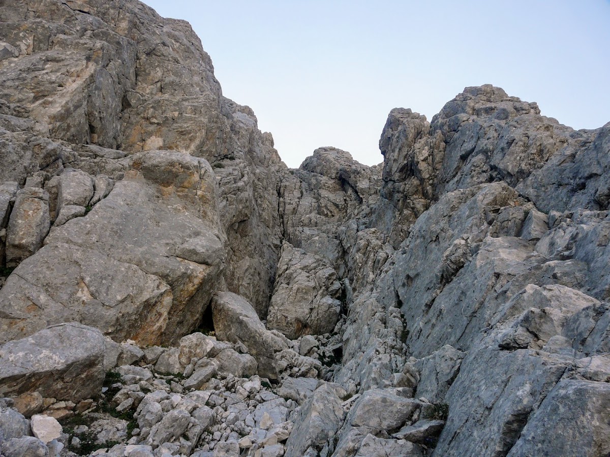 “Добрият улей“... дали е много добър, не знам, със сигурност е много по- ожесточен от рилските улеи, има и няколко надвеса в него, които те вкарват в насрещните му стени. Но е добър, защото е възможно да се слезе по него до „долната земя“: