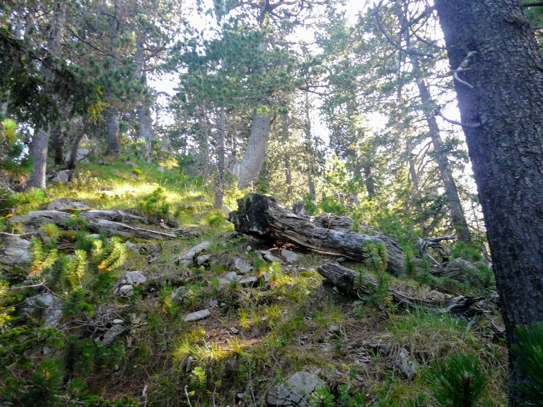 В средата между тях имаше един овраг. Направих 2-3 стъпки на него, но изсъхналите иглички на мурите са като пързалка. И щя или не, възможно беше да започна точно от началният ръб на Средонозо:
