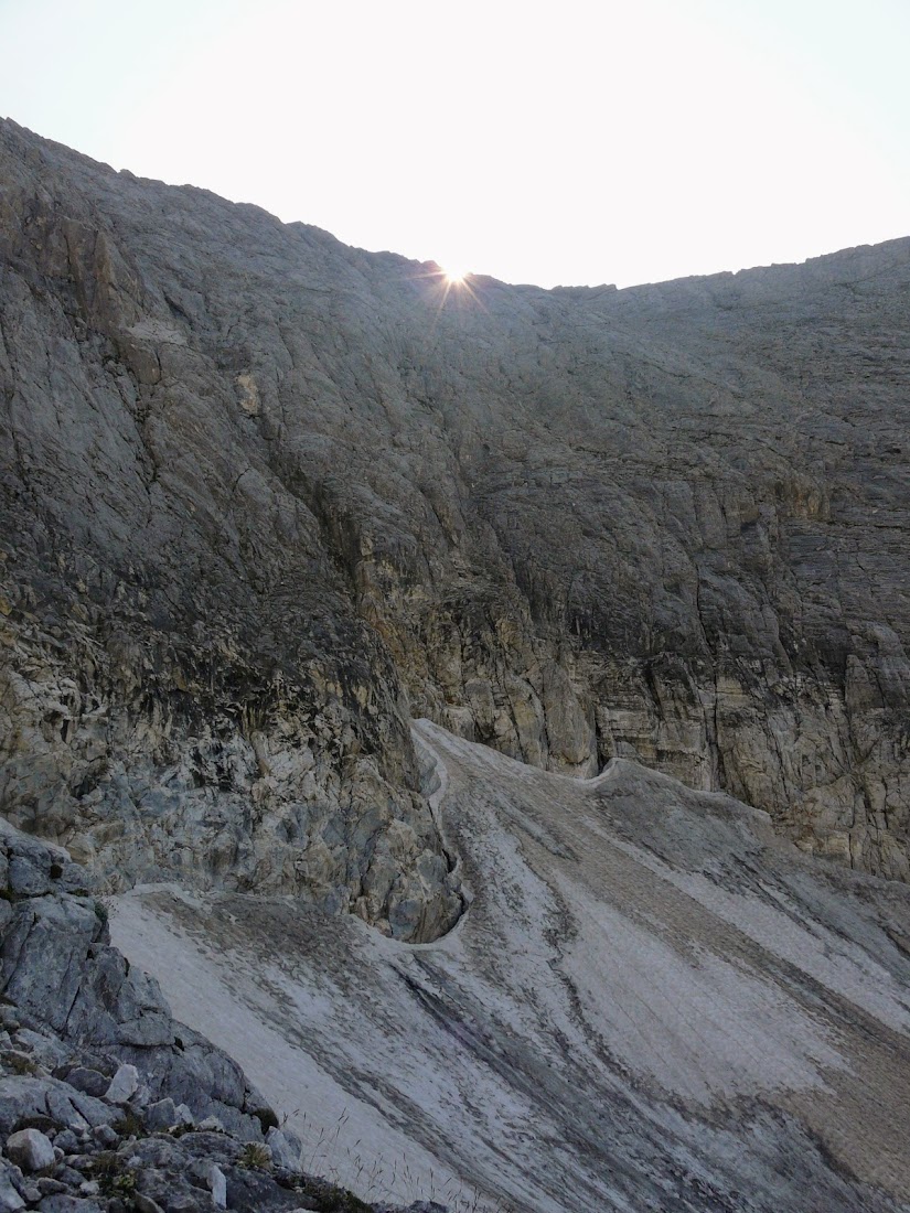 После се запътих по виа диагоналис, отново нов път за мен, директно под снежника и циркуса. Наслаждавах се на снежните преспи и челните морени, разхвърляни на различни места от последните ръкави на леда преди стотици години.