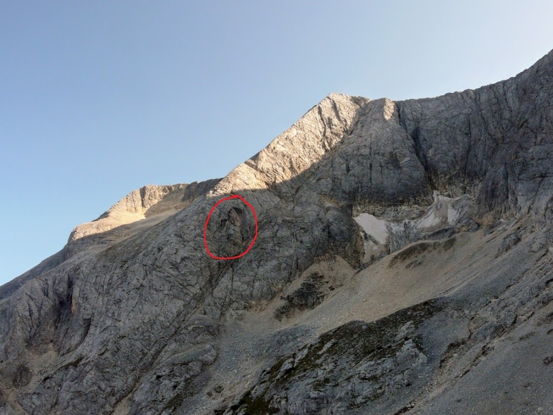 Мястото действително е много опасно и не бих минал друг път в близост до него. За пример с такива места, този връх на снимката долу ми се стори, че тази година го няма, паднал е. Може и да греша, но не можах да го видя :