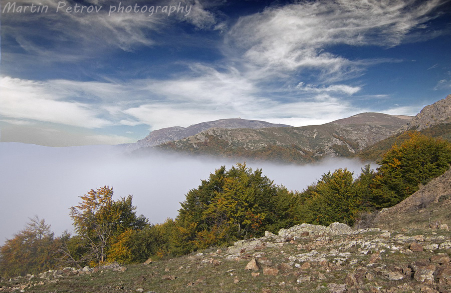 Я да видим сега, кой не слуша и ходи извън туристическите пътеки? Есента в средния височинен пояс неудържимо настъпва и всеки един миг там е гарантирана приказка гравирана с евентуални кадри. Решихме с колегата Христо, да пощъкаме по килима от нападали листа, да "покараме ски" по стръмните скали и да снимаме водопади няколко дни в резерват Тъжанско ждрело. Заредени с палатки, фотоапарати и много еуфория, а аз и промишлено количество храна, захапахме по склона Заногата над Паниците. Въпросният маршрут изкачва толкова стръмно, че на моменти човек може да дезертира от всякакви идеи, особено ако раницата му надхвърля 30кг. Час по-късно излязохме от ниската облачност. Извадих фотоапарата, колкото да се издразня, че всичко се скриваше постоянно и едва за няколко секунди успях да заловя връх Ботев в далечината. Висока облачност необуздано препускаше по сините небеса над Стара планина.