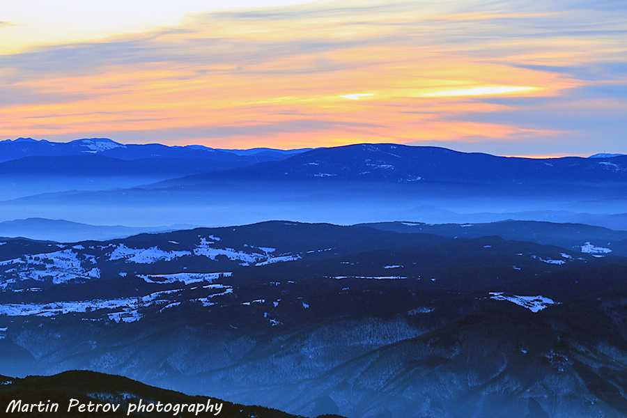 В дясно от нас, някъде иззад могъчите Родопи небето с всяка минута ставаше все по червено. Нощта започна да отстъпва бавно място на деня и цветове по хоризонта се преплетоха в розово-лилава-синя игра.