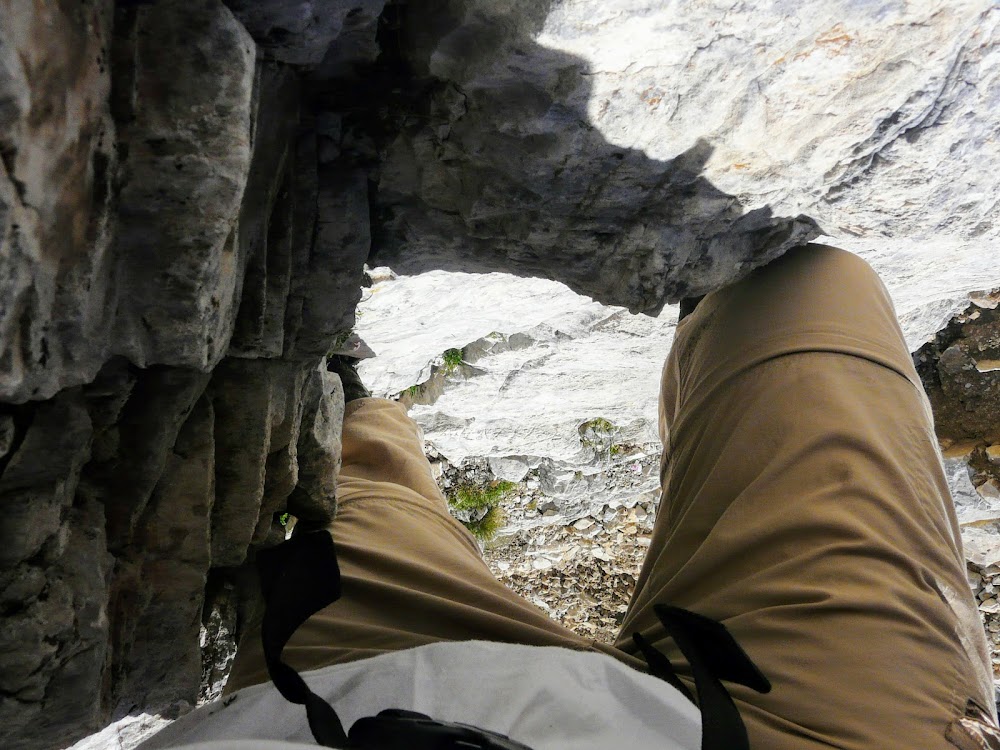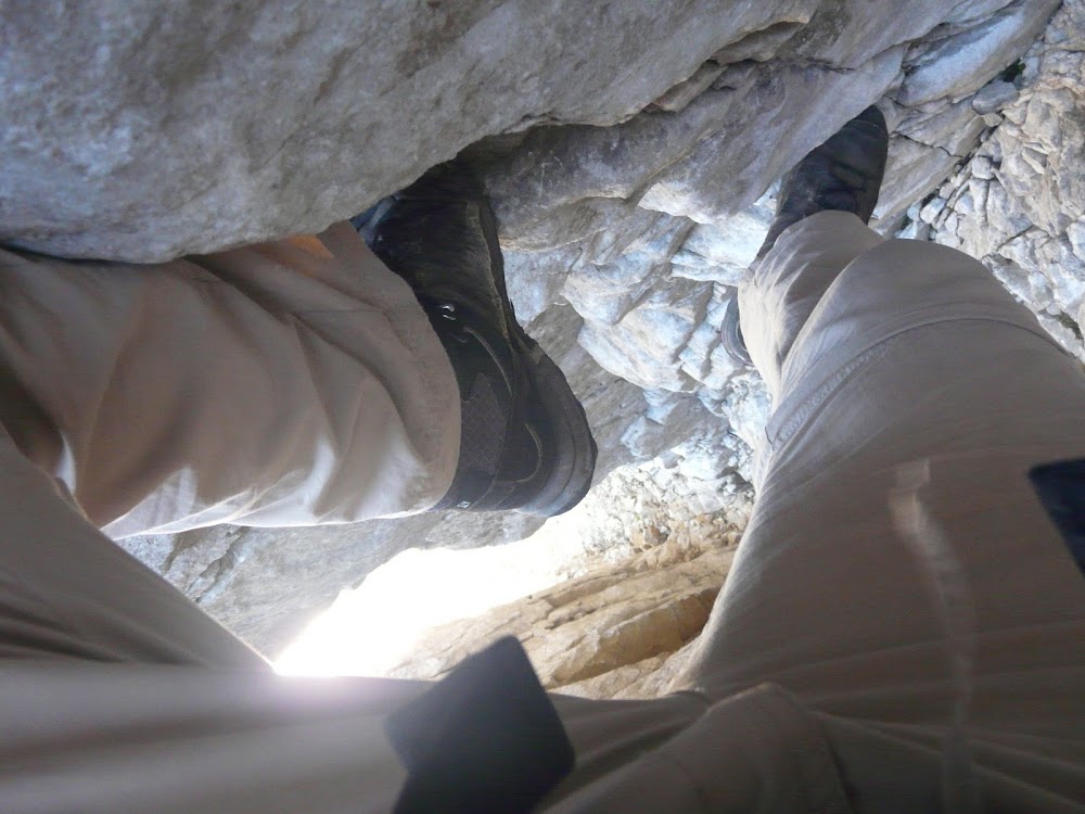 Отдалече изглеждаше широк отвор, но се оказа, че с раницата не мога да премина. Извъртях се бавно вътре като тирбушон и със скърцане, раницата излезе. Иначе трябваше да се връщам обратно в основата и да я свалям.