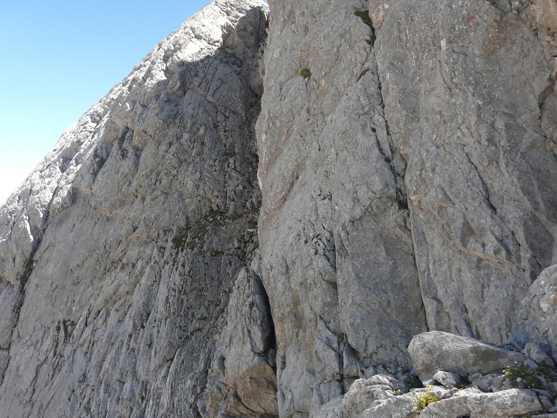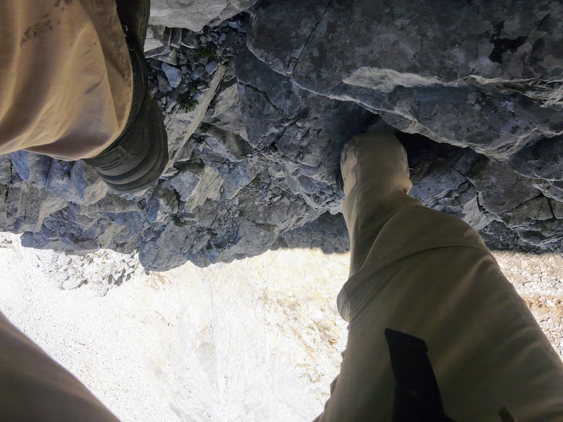 Не знам лесно ли е, но като хвърлям поглед надолу, егати лесното, под мен си гледам едни 1-150 метра вече отвесни.... Опипах дали пособие №1 за трудни участъци, препоръчано от Владофф, е в раницата под ръка - споко, тук е.