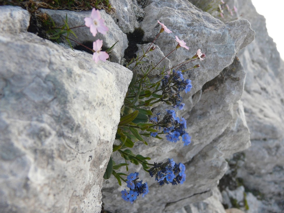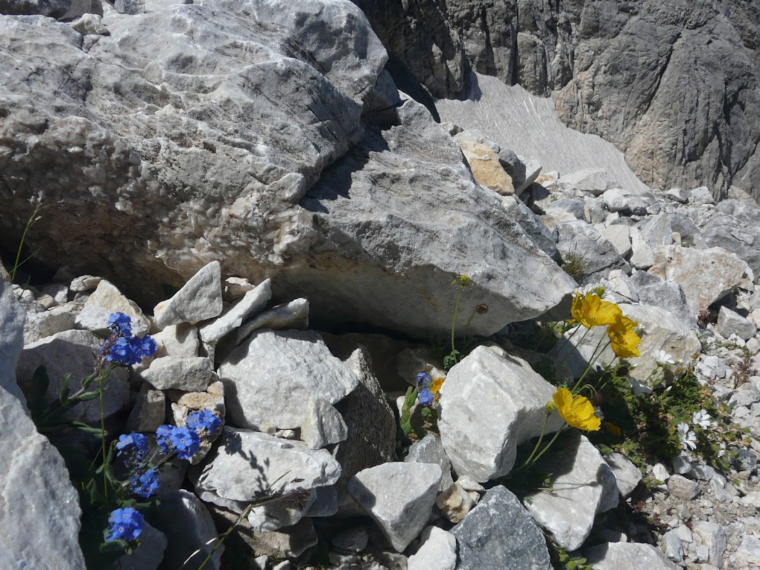Навсякъде, има и тук интересни цветя, но не еделвайси – те на чисто северни склонове не виреят. Трябва им изнесена на слънце скала, но тук няма такава. Другарчетата им компенсираха: