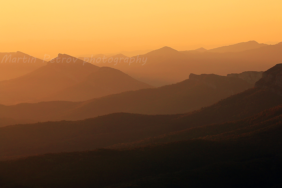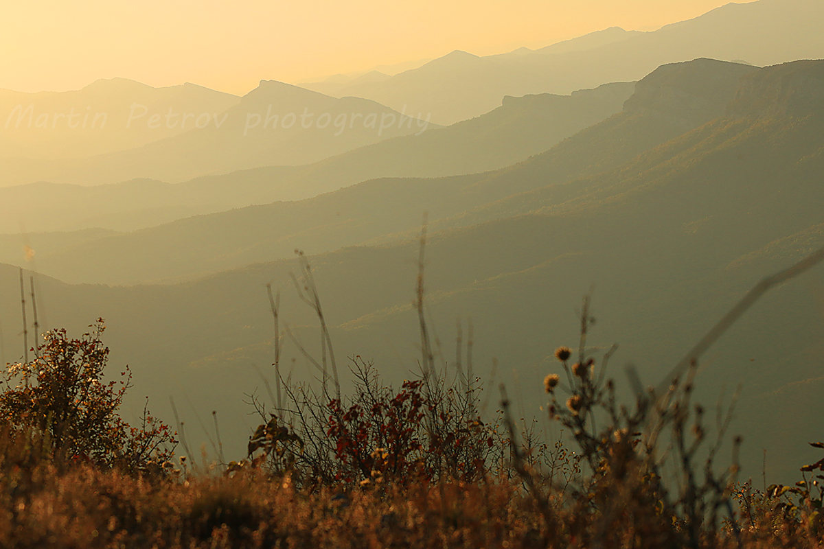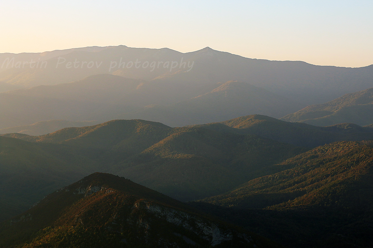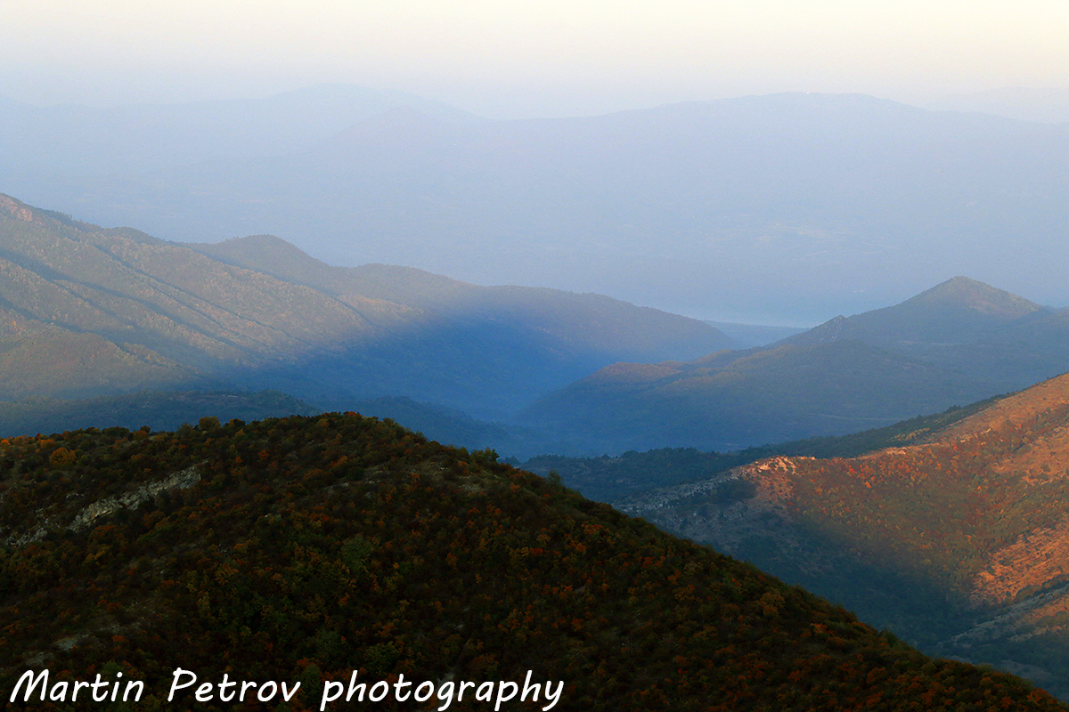 Есенен контраст по изгрев от връх Ведерник. Цветове и хълмове обхождат пейзажа, който е като "на луната".
