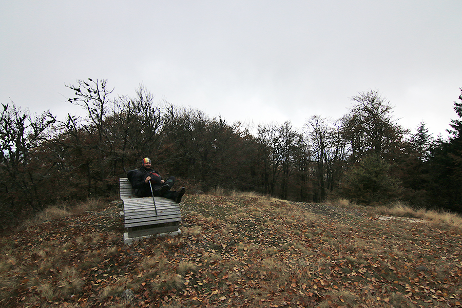Луксозен дървен шезлонг преди горската отсечка, която ни очаква. От връх Бедек до горски дом Българка ни делят 10-а км, с около 500 метра спускане, което трябваше да изкачим в утрешния ден, на връщане. С тежките раници ходенето спореше.