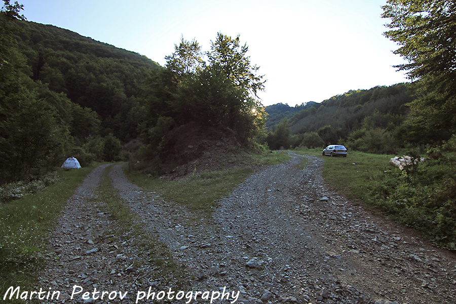 Преди да достигна до заслона. Над долината. Пътувам все още с ниския автомобил. Шкодилакът се сърди и ръмжи на ниските предавки. Не предполагах, че ще стигне невредим до изходна позиция. Това му беше само лека загрявка за кошмарните пътища над село Долна Мелна и село Шипковица в граничната планина Кървав камък.