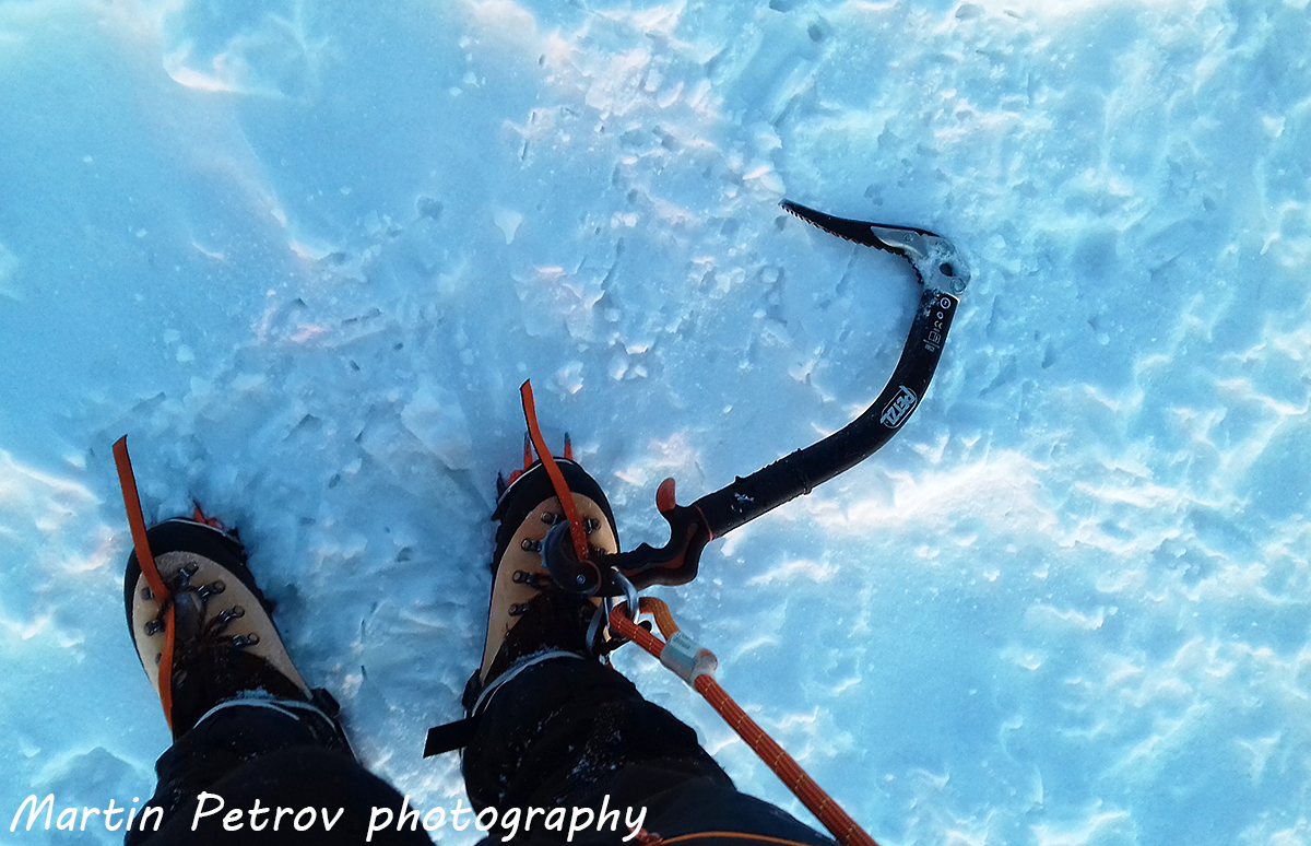 Появиха се признаци на умора, слънцето също не пожали снежните форми и снегът на места започна да се свлича. Бях помислил и затова, бързо напредвах и скоро достигнах "баба Костенурка".