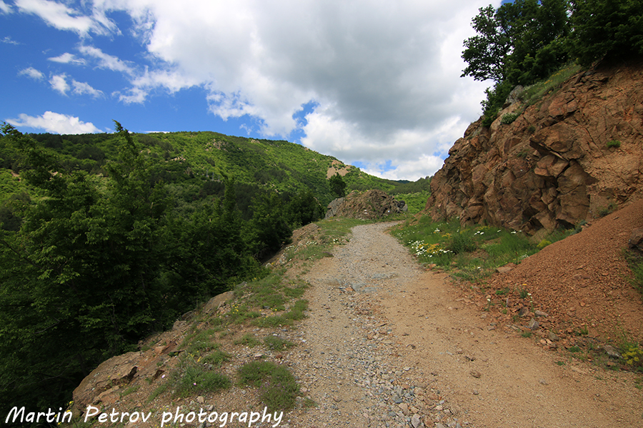Пътят навлиза в северна посока към планината и предлага панорамни гледки, като денивелацията по него се набира плавно (две трети от маршрута). В последствие отсечката преминава в стръмна и нещадяща силите гора, която излиза на панорамно място преди билото. Засега се абстрахирам от камънака и електропреносните стълбове. Облачността е по поръчка, както за снимки, така и за леко придвижване!