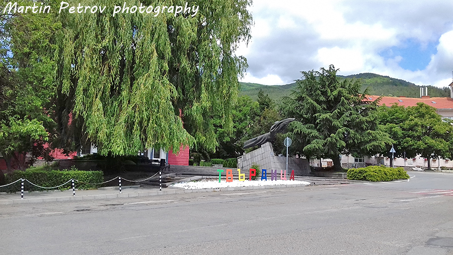 "Кацам" сравнително бързо на жп гарата в Твърдица и бързо поемам по улицата към подножието на планината. Цветен надпис ме посреща на кръговото движение, създавайки настроение. Върба и хубава чешма, от която човек да си напълни вода. Зад тях е общината, зад нея планината.