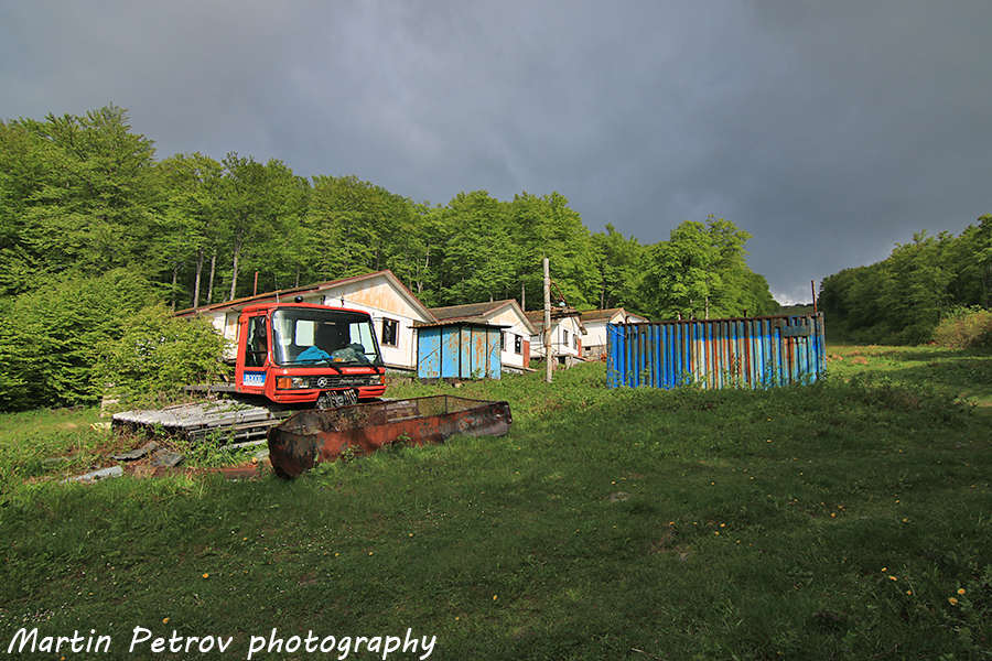 Изоставените съоръжения малко преди хижа Чумерна. Дъждът ме хвана на няколко места. Тътени продираха зловещо небето в далечина, но буря нямаше.