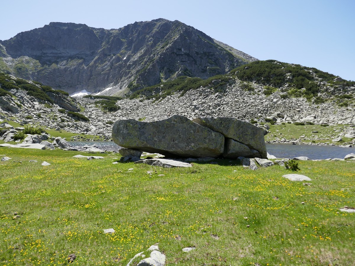 тук, точно на това място , преди 15 години , нали споменах че идвам да правя някво скромно пиринско юбилейче , напуснах пътеките / и не се върнах на тях и досега /, за да открия истинската планина, която е извън тях. Каменният хаос ме отведе на езерото под Спанополски чукар, което е единственото, на което няма грам равно място. Малко по-нагоре се опънах за нощувка. Нарочно нямам палатка, само чувал и покривало, истинският кеф е да заспиш, гледайки 1-2 часа в притома