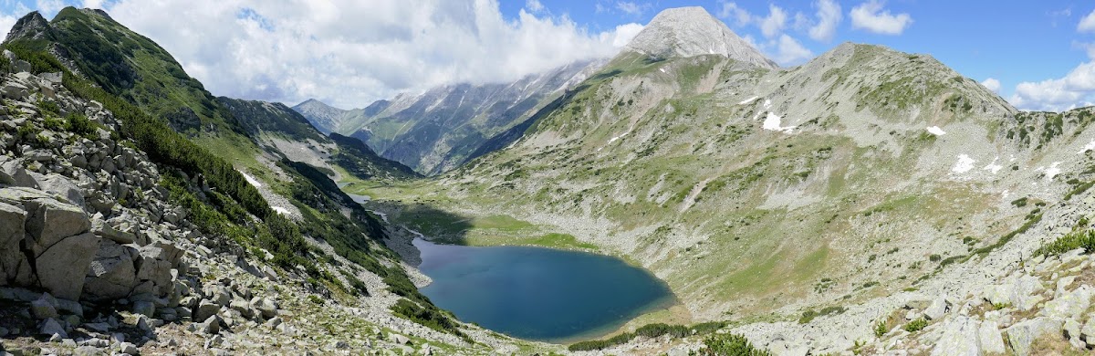 Стигнах до една закътана долина, най-високата в Пирин, под Кутело. Нема и нема вода там, пак изпуснах потока. Тази година на ниското има сняг, на високото няма...Обаче гледки оттам пък има... с новото фото, с повече сила: