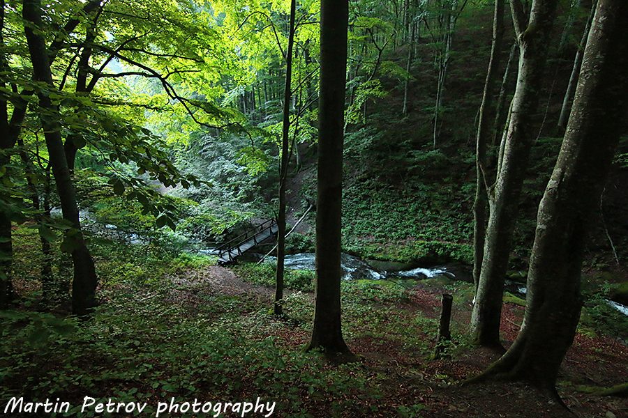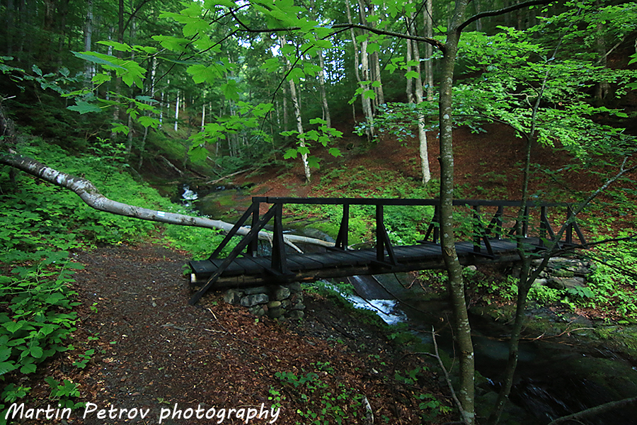 Рано сутринта. Подготвил съм се психически, че ще видя зор! Shocked Очаква ме двупосочен преход от хижа Хайдушка песен до връх Васильов и обратно. Температурите вече са летни и направо не е за ходене. Впрочем, реката още от началото примамва да оставя безкрайното ходене за свежите есенни дни, но все пак поемам нагоре, пресичайки мостчето! Smile
