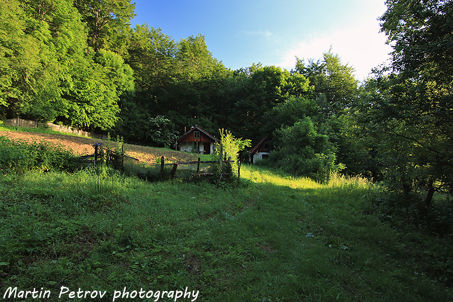 Приятни къщи, сгушени в горите на Стара планина. Бързо набирам височина, излизайки и на поляни с червени горски дарове - ягодки! Smile