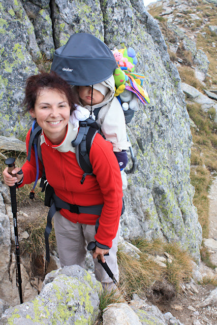 До Мальовица времето бе средна хубост, но точно когато бях на метри от върха, облаците завладяха района. Почаках малко, па поех надолу. Току под върха срещнах господин и дама, носеща в раницата детето си. Бе любезна да се съгласи да ги снимам: