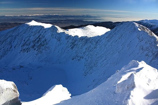Едно от двете езера в циркуса, замръзнало и покрито със сняг.