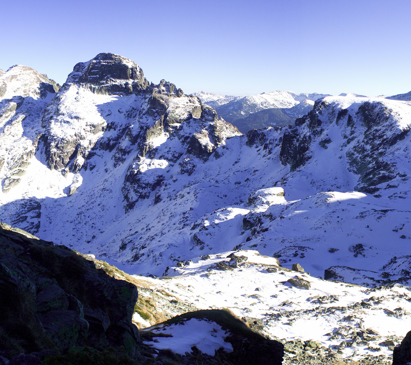 Карлинг май не е, водят го скален ръб ако не се лъжа. Ето ти една снимка. Снимано е от процепа между малката и голямата Мальовица, част от панорама, кропнал съм интересуващата те част. Отляво надясно трябва да са Орловец (високия черен чукар), Петлите и Елени връх. Възможно е да бъркам с географията на камънака, но това би трябвало да бъде. Дано Жоро левскаря го огледа, той май е светнат по Рила.