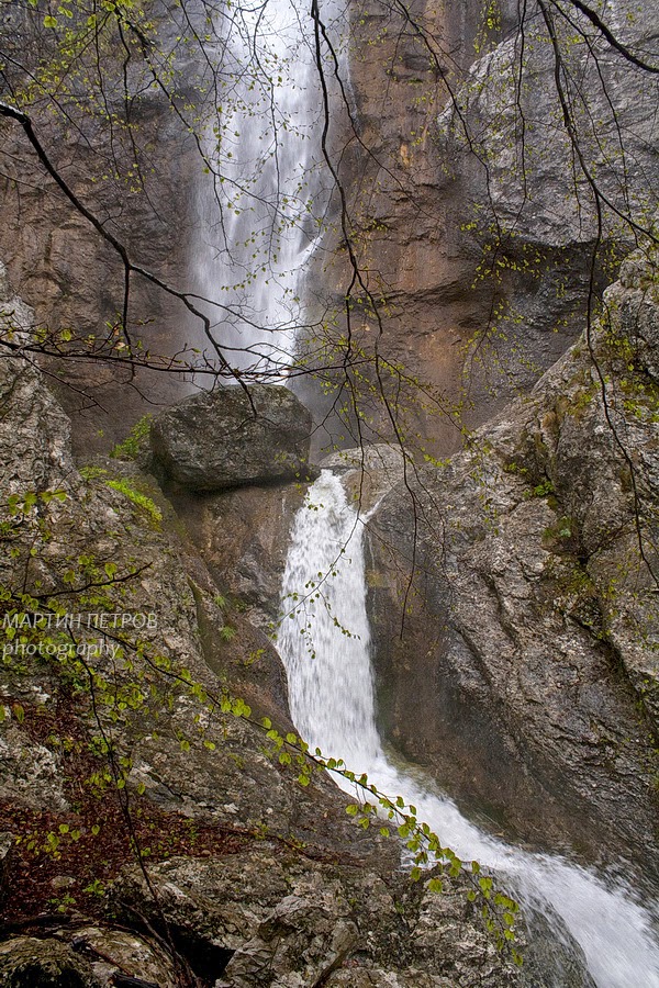 Предполагам седмица по-късно с раззеленено дърво, водопадът не би бил удобен за снимане от тази позиция, в която се разкри сега изключително добре.