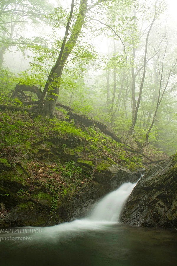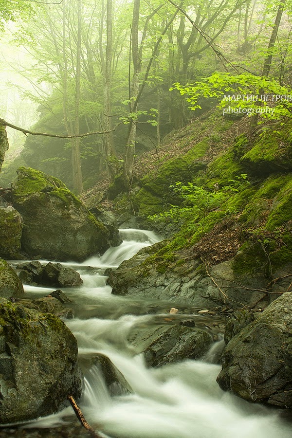 С подход през местност Барата покрай Курудере в резерват Соколна сме правили планински преход до водопад Скока в Кюйдере, по което поехме сега. Този път обаче сметнахме, че ще има мегдан за интересни пролетни снимки със зеленина в мъгливата гора, а и ни беше любопитно какви ли красоти се скътават от любопитните ни погледи по самата река... Непристъпните каскади занадничаха към фотообектива след всеки следващ завой.