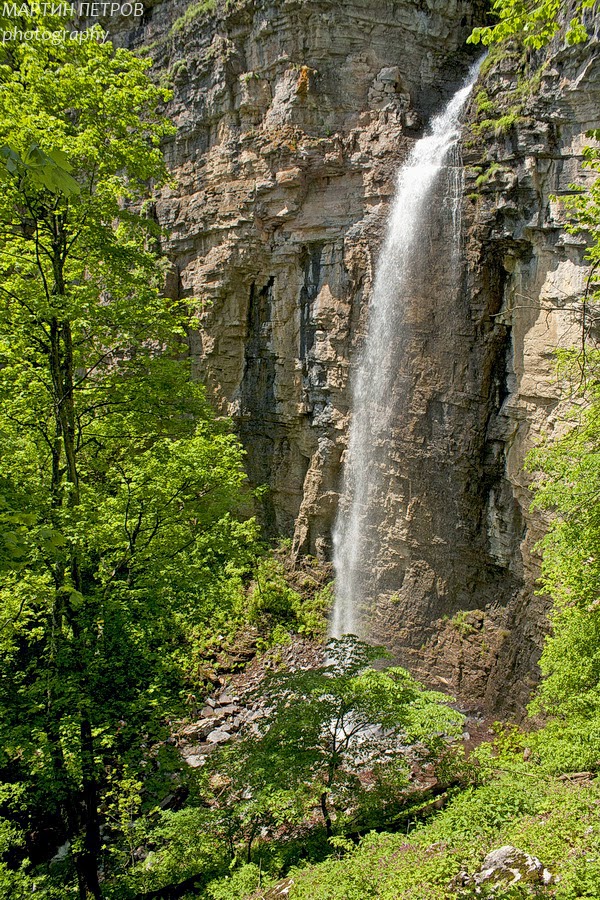 Страхотен дебит приветстващ с шум, свежест, зеленина и облаците, зад които слънцето се скри, за около пет минути в слънчевият юнски ден. Бинго, си казах наум и извадих статива да отстрелям приказката случваща се тук. Тъй като беше първи юни се чувствах като дете пред неразопакован подарък! Водопадът е висок около 40 метра, според замерванията ми с въжето.
