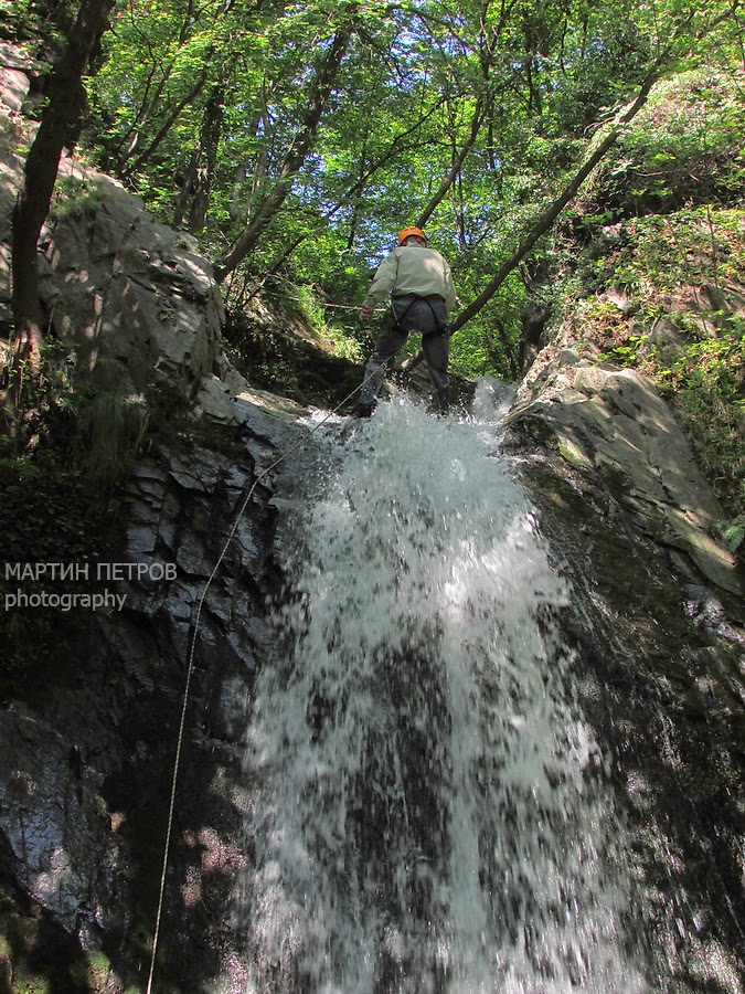После Делчо, Мария и Мариана, които чакахме да дойдат се изсипаха в подножието на водопада и се почна едно качване над водопада и спускане по него, край нямаше разхладата. Делчо остана очарован и даже усещам как му се запалиха фитилите на тази вълна с въжетата.