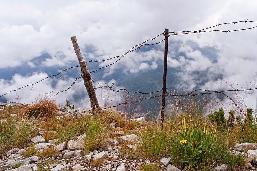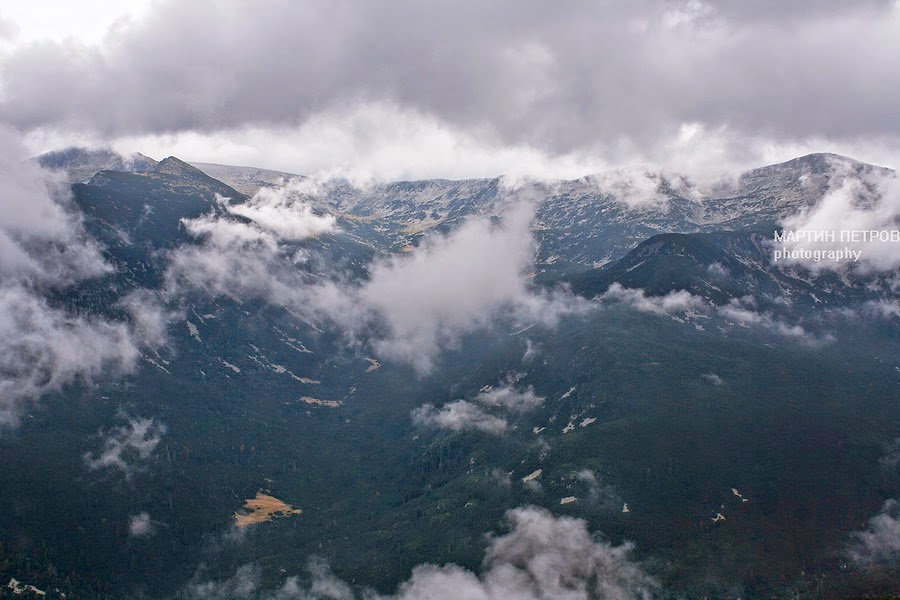 Връх Мечит в мъгла и Фердинандовият (Кайзеров) път, който подсича ръбовете на билото. Билото спираше мъглата и я връщаше обратно, натам така и не се отвори прозорец.