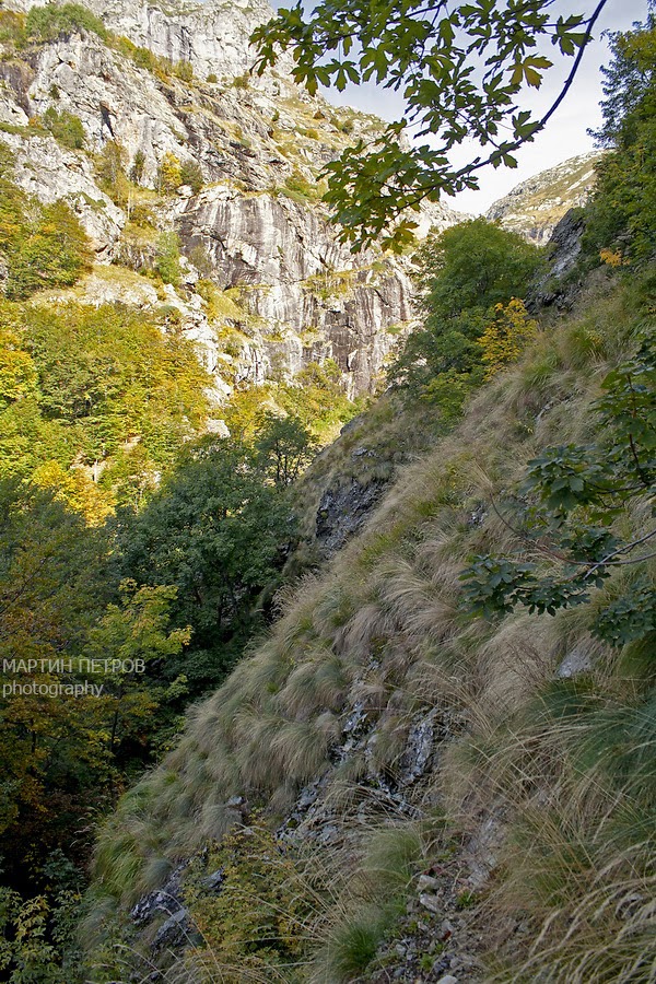 За да се добие представа, наклона на склона личи най-добре по следващият кадър. Това бяха част от лесните участъци, на места тревите свършваха със скални улеи слизащи дълбоко в недрата на каньона. Хич не беше лесно!