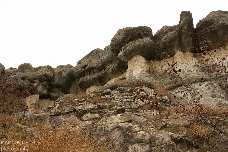 Бързо въведен в местната обстановка започнах "нащракване" в мъгливото време на светилището Харман Кая. Скали, отвори, кладенци в скалите и пещера скрита от повечето туристи в основата на масива.