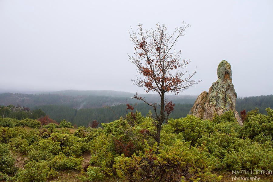 Бързо въведен в местната обстановка започнах "нащракване" в мъгливото време на светилището Харман Кая. Скали, отвори, кладенци в скалите и пещера скрита от повечето туристи в основата на масива.